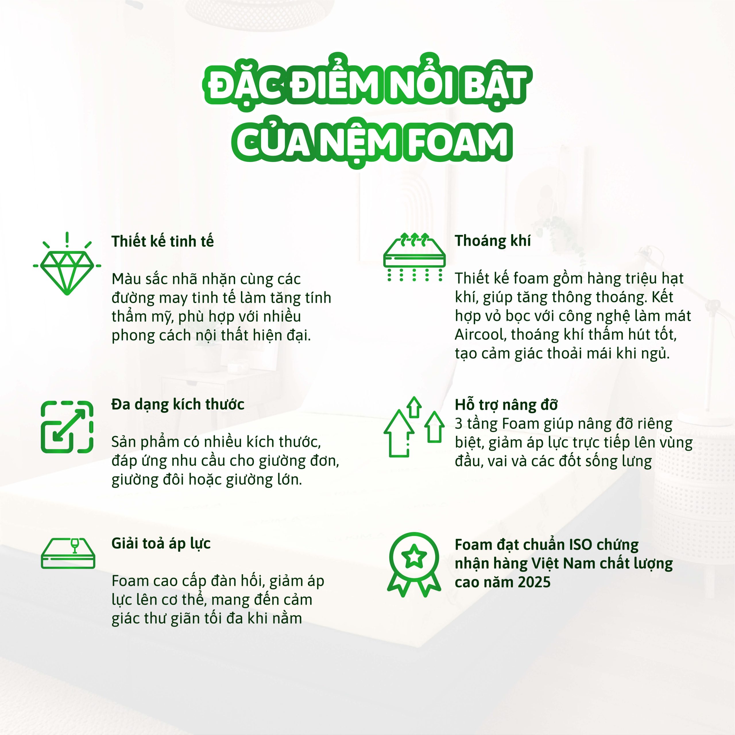 Nệm Foam Kim Á Hoạt Tính